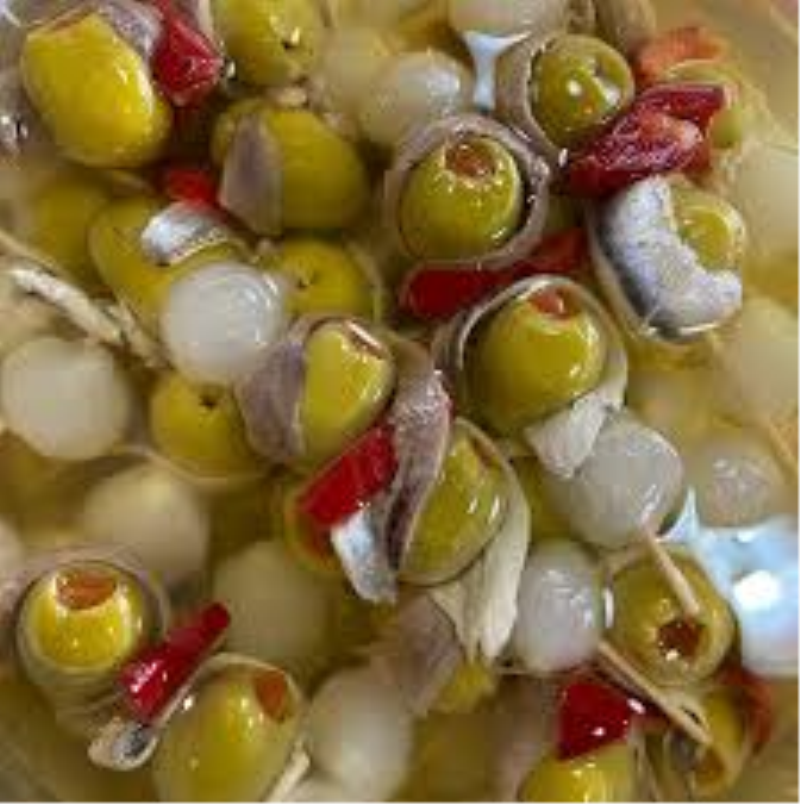 PINCHOS ARTESANOS DOBLE MIXTO ORIGEN ESPAÑA Gildas artesanas de matrimonio extra del Cantabrico. Exquisita combinación entre pimiento ,aceitunas,cebollitas, anchoas y boquerones del cantábrico para sorprender a tu gente . Así que si quieres probarlas, acércate a tu tienda Fruteria Frutas Tropical