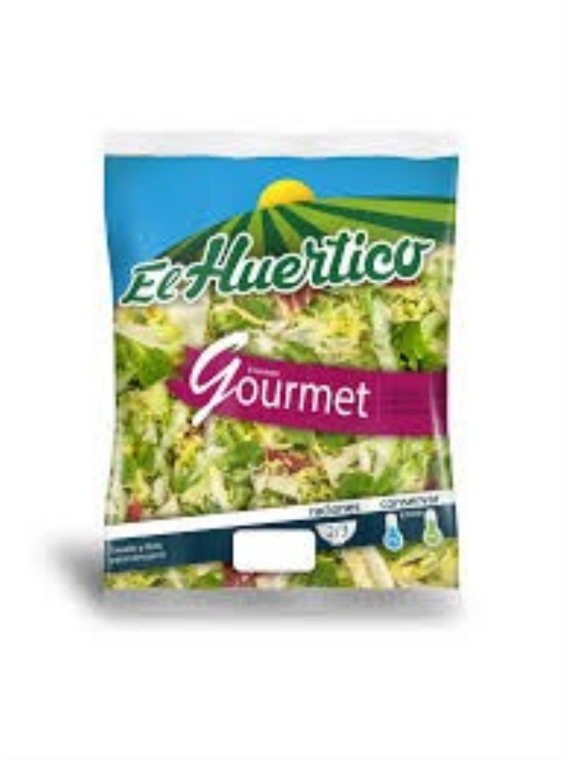 ENSALADA GOURMET BOLSA 200g ORIGEN ESPAÑA -PERALTA -NAVARRA Bolsa de 200g de ensalada mezclum con escarola rizada, brotes de lechuga roja, radicchio y mizuna, perfecta para combinar con quesos y carnes o mariscos. Combina la textura crujiente con la ternura, con distintos matices que combinan a la perfección para que acompañes tus recetas. Es rico en fibra y se le atribuyen propiedades muy beneficiosas para la salud: fuente de antioxidantes, facilita las digestiones, mejora el tránsito intestinal, es diurética y depurativa, etc. Variado de diferentes lechugas cortadas, higienizadas y listas para comer.