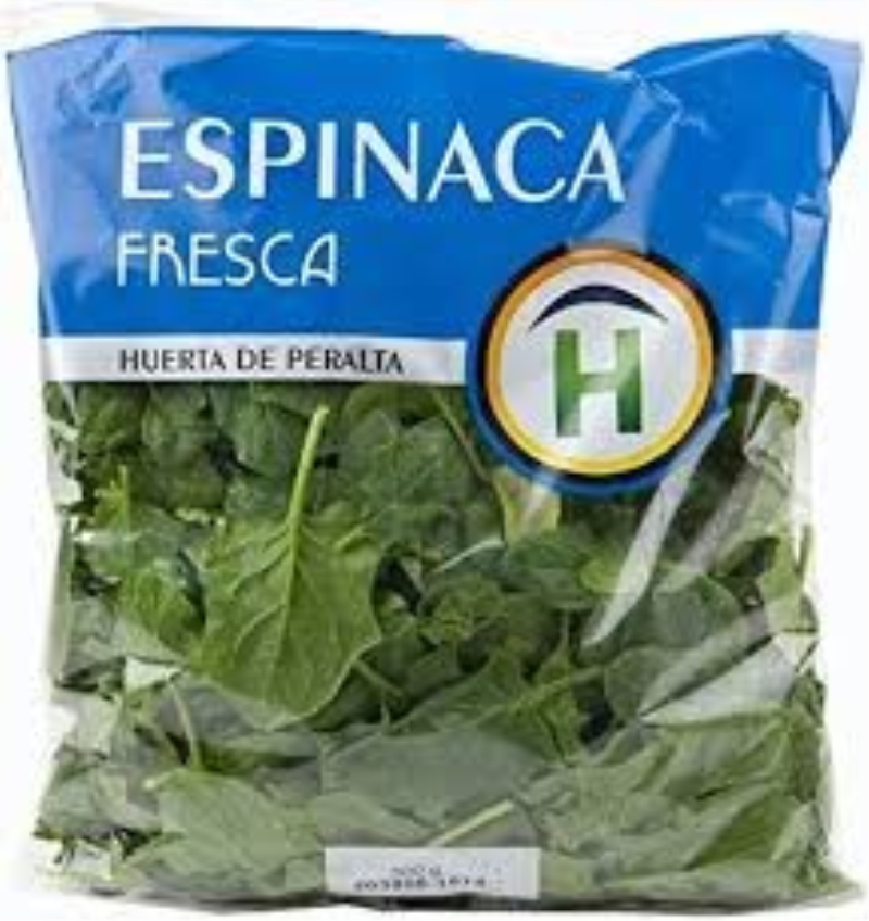 ESPINACA BOLSA DE 300g ORIGEN ESPAÑA -PERALTA-NAVARRA La espinaca (Spinacia oleracea) es una planta anual, de la familia de las amarantáceas, subfamilia quenopodioideas, cultivada como verdura por sus hojas comestibles, grandes y de color verde muy oscuro. Su cultivo se realiza durante todo el año y se puede consumir fresca, cocida o frita. Las espinacas son una verdura excepcional y muy saludable Su alto contenido en fibra nos hace mejorar el tránsito intestinal incluso nos protege el estómago evitando la úlcera gástrica. Rica en vitamina A, vitamina C , vitamina B, vitamina E y vitamina F y minerales como elhierro, potasio, magnesio, manganeso.