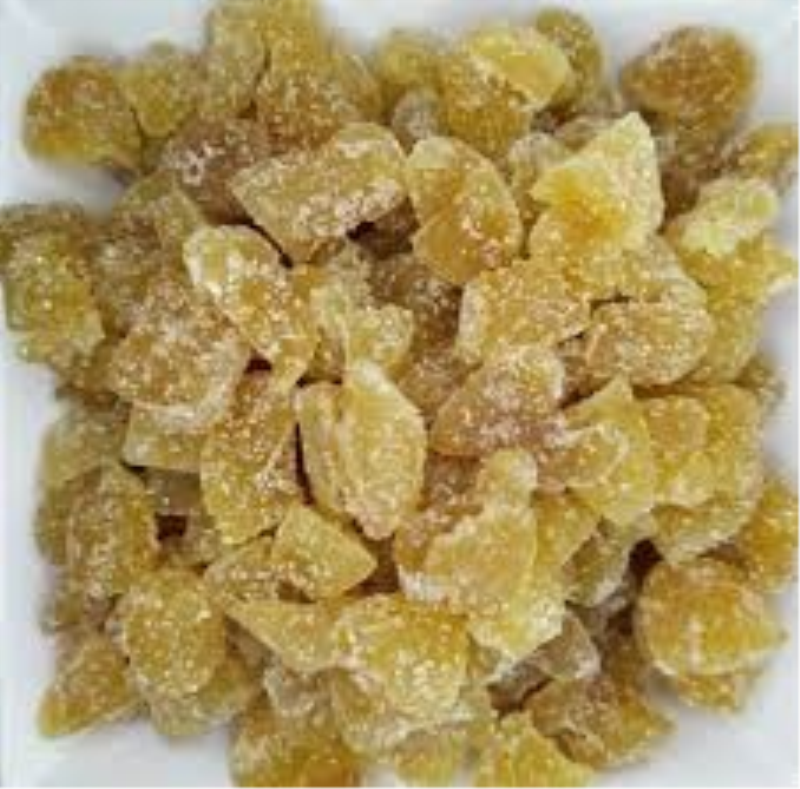 JENGIBRE DESHIDRATADO CON AZUCAR DE CAÑA 200g ORIGEN THAILANDA Su sabor es picante y dulce a la vez, y su textura es masticable. Algunos de los beneficios que obtenemos del jengibre deshidratado con azúcar son: Es un alimento rico en gingerol por lo que tiene un gran poder antiinflamatorio y antioxidante. El jengibre deshidratado estimula el páncreas y crea enzimas que ayudan al proceso de la digestión. Además, reduce el riesgo de sufrir gases y otros efectos secundarios de la digestión, al mismo tiempo que actúa como antibiótico natural contra las bacterias que causan el mal aliento, la gastritis o la diarrea. PUEDE CONTENER,,,, trazas de cacahuete ,frutos de cascara,sesamo,leche,derivado lacteos y de soja. CONTIENE SULFITOS